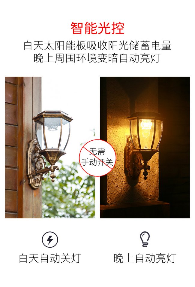 太阳能壁灯户外家用太阳能灯庭院灯门灯室外壁灯露台灯防水