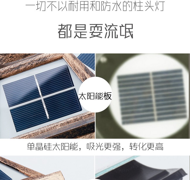 太阳能柱头灯围墙灯超亮家用室外防水欧式门柱庭院灯户外太阳能灯