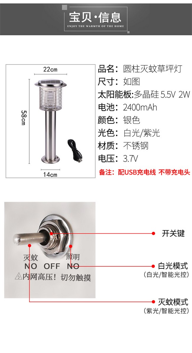 太阳能草坪灯户外家用驱蚊别墅庭院花园农场杀虫捕蚊室外灭蚊灯