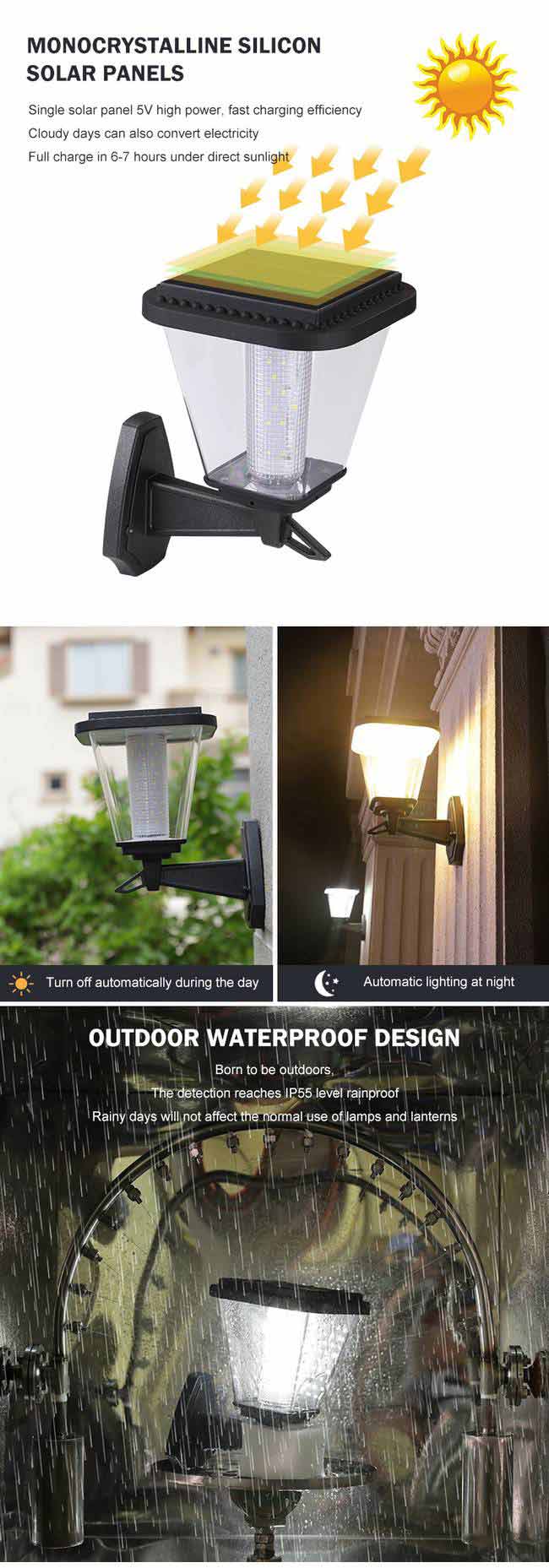 240 Lumen Sconce Fixture Garden Outdoor Waterproof IP65 2W Led Solar Wall Light